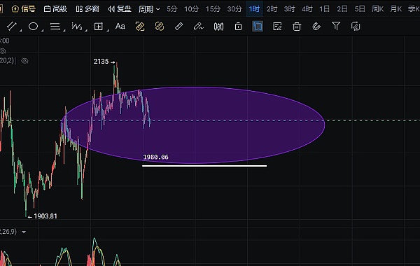 昨日欧盘临近2100关口受阻回撤,随后惯性震荡续跌,李隆给到的区间吃空思路如约精准了结(前文可阅)。目前小时图来看,价格屡次探高回踩不止,而2100位置依旧处于密集抛售区,连日区间框架虽仍在僵持,但低点下移不断蓄势,今日操作上,李隆建议延续昨日思路,稳妥反弹顺势分批接空,进场切记做好分批风控计划。