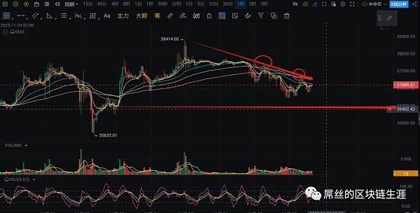 大饼,BTC目前再37000附近一直震荡徘徊,小时线来看,目前如果行情走波浪下跌的话,就必须符合一下几个要求,第一37300附近的第一压力位,如果短期之内价格很难去有效突破的话,可能就会走波浪下跌,回36500的支撑。第二37700属于重压力位,短期来看上方的套牢盘还是很多,主力要消化这些套路盘,才有可能上涨突破,所以需要特别关注小时线的vol指标,量能如果没有被突然放大,并且实现插针的话,我认为这波行情很难有比较明显的突破,我的建议是:高空做单思路,低多做单的话必须BTC要站稳37300才可以考虑做低多。