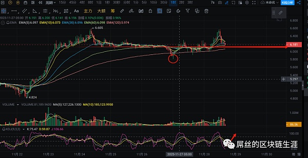 瑞波,这波大盘的下跌或许与这个消息有关。以色列激烈的融资斗争中出现了新的加密战线-xrp,剧透11月27号,以色列在打击哈马斯和真主党等伊朗支持的激进组织的资助方面出现了一条新的加密战线:一个名为Tron的快速增长的加密网络。trx会不会腰斩,这个取决于监管部门对孙宇晨的容忍度,如果一旦孙宇晨被抓的话,很有可能跟之前的luna,sol一样,形成断崖式下跌,所以大家多关注一下,此外,从小时线看,trx其实已经出现了很明显的顶部信号,双顶建立,所以我的建议是:高空策略,不建议做多,比较处于风口浪尖的时候,还是需要少碰。