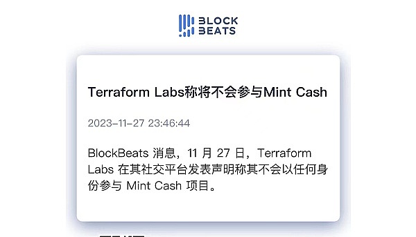 昨天ustc十点开始一路下跌,最低点到0.0303u 跌幅一度到达-60%以上,是因为晚上十一点出了一条消息 Terraform Labs 称将不会参与Mint Cash 对正fomo的市场无疑是重磅一击,导致币价直接暴跌
