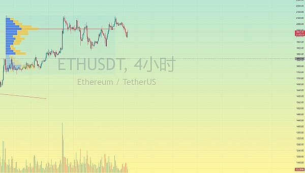 以太相比大饼子要弱了很多,筹码密集区均价差不多在2050 附近,目前仍然处于4H 支撑附近