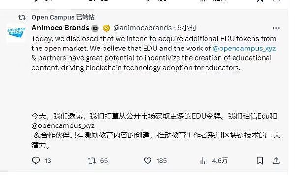 edu 现报价:0.615u Animoca Brands 和币安实验室 都表示了对edu 的看好,也正打算从市场获取(回购)edu的筹码 日线级别上涨也没怎么放量,现货可以先入个头仓 下方留补仓位,上方目标 0.9u