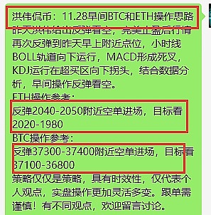 早间洪伟给出反弹看空,完美止盈,BTC利润空间近500点,ETH40点