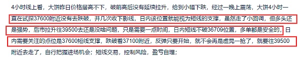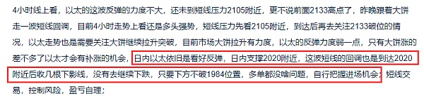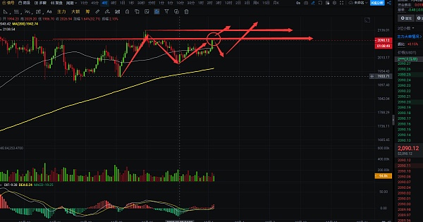 昨日我们文中说行情多头还是强势,大饼日内只要不破36709,多单就没问题,日内关注37600支撑,大饼昨日的下跌低点在37443位置,但收线还是收到了37600附近,今日行情反弹站上38000上方,后面就需要关注压力的破位了;以太昨日我们说日内支撑是2020附近,昨日白盘下跌低点就是2020附近,随后走出反弹,截止目前反弹最高点位在2099附近,基本到达昨日我们说的短线压力2105附近,日内以太关注压力突破情况;
