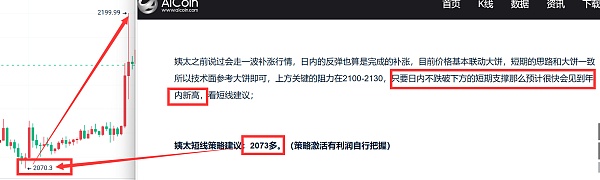 姨太上文给出的2073多,行情在2070精准反弹上涨。