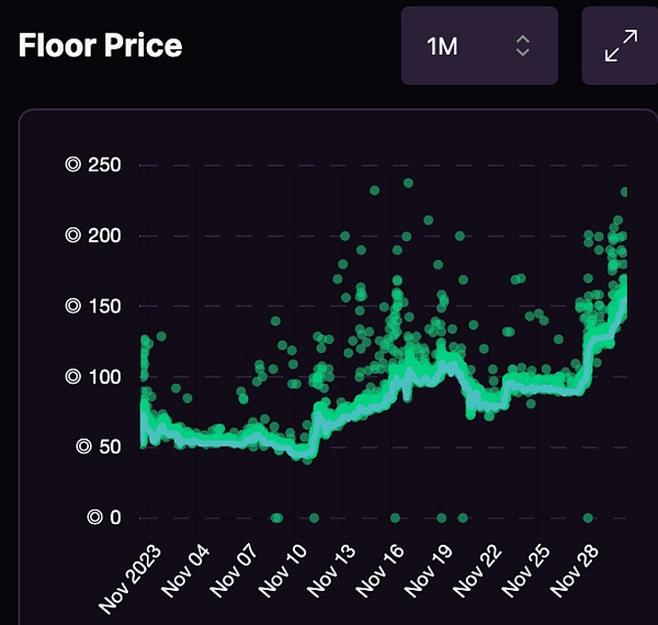 Mad Lads 的成功得益于几个关键因素。首先,其创新的 xNFT 概念为 NFT 市场带来了新的活力。这种新型的 NFT 不仅是数字资产,还具备执行内置代码的能力,为用户提供了更多互动性和实用性。其次,Mad Lads 在市场上的表现非常抢眼。在24小时内的销售额超过816万美元,超越了同期的 Bored Ape Yacht Club。这一显著的销售成绩在很大程度上是由于其独特性和市场上的高期待。此外,Mad Lads 的地板价在两周内内上涨了200%,达到160 SOL,使其成为 Solana NFT 系列中最有价值的之一,被市场高度认可。