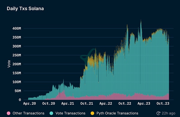 2023年至今,Solana的日交易量表现出稳定趋势,尤其是投票交易数量有所上升。
