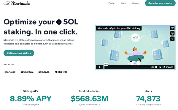 作为Solana生态中TVL最高的项目,Marinade Finance是一个专注于简化Solana质押过程的流动质押平台。其主要特色是提供「流动性质押」,允许用户随时将质押资产转换为流动性,无需等待解锁期。