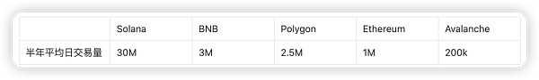 Solana 生态正处于全面爆发的前夜,在经历过FTX破产等挑战后,依然保持强劲增长。TVL显著增加,DeFi Velocity显示出非常高的流动性利用率。日交易量稳定上升,远超其他公链。