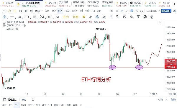 白盘的上涨完全在预期之内,早间给出的做多思路得到验证,也是拿到客观的利润。那么晚间行情出现较大震荡也是正常现象,大涨总会出现调整,只要调整就是进场的机会。大饼目前41300附近出现止跌,小时线横盘,并且出现下探影线,趋势还在拉升的状态,至少主力不想让行情过多下跌。晚间大饼还是建议回踩41300—41400附近做多,目标上看500—1000点;以太下方插针幅度直接打到小时线中轨附近,并且收出长下影,下方2210附近支撑较强,晚间回踩2120附近可以多单,目标上看2250—2270.