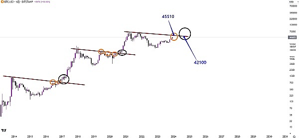 在比特币现货ETF批准之前,机构投资者对比特币的需求不断增长。有关分析评估了比特币价格上涨趋势,发现市场参与者存在“错失恐惧症”,也就是FOMO情绪。比特币价格很可能会在定于2024年4月举行的第四次减半事件之前重新回到45000美元的水平,触及45000美元后回调至42000美元水平。