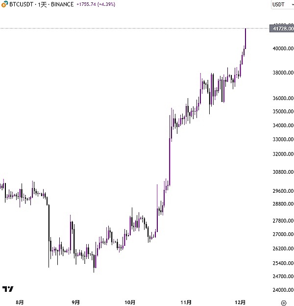 比特币短线上冲逼近4.2万,减半前攻势将延续。比特币价格上涨可能是由于现货比特币ETF获得批准的预期,以及美联储降息押注所推动的,当前周期中有更多推动比特币价格上涨的催化剂。