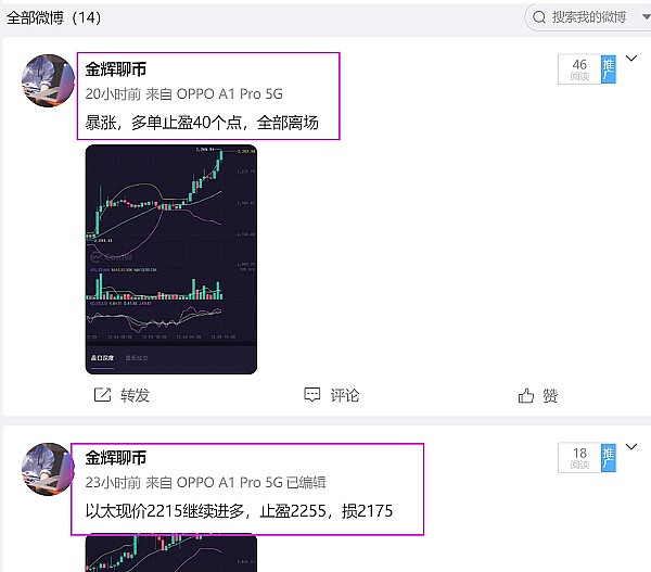 金辉聊币:恭喜 行情暴跌 ETH在2374布局的空单拿下60多个点 太给力了