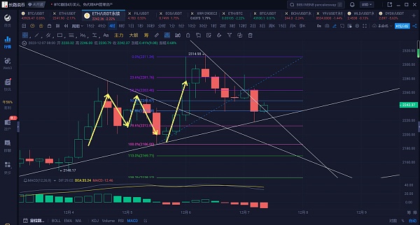 以太坊上个交易日行情整体处于震荡下行中。早间反弹2312附近承压回落,晚盘虽有反弹2288附近但未突破高点回踩2233附近获得支撑再次反弹2285附近,下挫2220才止住跌势反弹,现行情位于2245附近震荡。