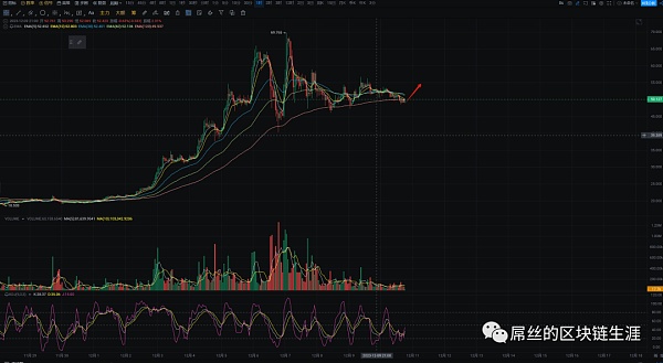 奥迪(ordi)整体行情偏向震荡为主。在4小时级别上,价格一直在MA30均线附近震荡。KDJ指标显示底背离的状态,需要关注44美元附近的MA60均线支撑。在小时线上,价格表现为震荡滑坡走势,MA120均线50美元附近已经被跌破,但量能不足。这几天的交易量极为缩量,但很有可能出现反弹。我的建议是,在价格不跌破44美元的情况下,可以多次尝试低多。只有56美元位置不被突破,行情很难出现大的反弹,但指标显示此处可能会有一定程度的反弹。个人建议按照之前的做单思路进行操作,如果跌破44美元则止损。目前在46-55美元之间范围内进行低多,一旦突破56美元,可以关注62美元附近,突破新高后可以追涨。