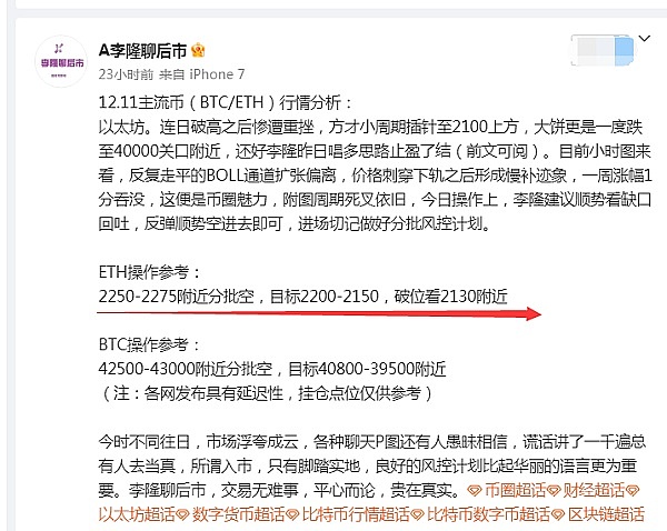 如李隆昨日午间所说,以太坊重挫破位,反弹顺势去接空,2250上方直接空。午夜最低触及2156附近,短线拿下100点的把握空间,实力番苍,全网见证!点位依旧精准吻合,盘中理性稳健取舍。李隆聊后市,交易无难事,平心而论,贵在真实。