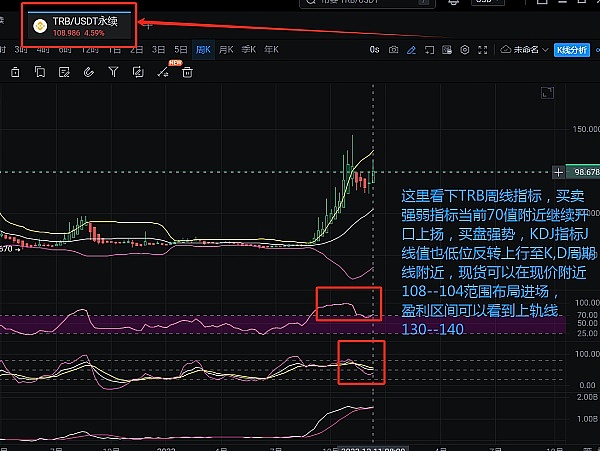 对于TRB现货投资,建议在108-104范围内入场。一旦行情向好,可以预期盈利点位为130-140。