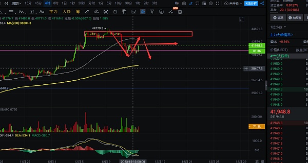 行情昨晚给到下跌,但是没有跌很深,大饼最低点是40556,以太最低点是2145,只是给到了小幅的下跌,目前短线开始走出反弹,14号凌晨3点有今年最后一次的美联储议息会议,目前美国的通胀情况是得到了一定的缓解,但11月的CPI月率数据意外上升,这就属于通胀下跌的过程中的不稳定因素,未来的经济也是存在很多变数的,今晚看鲍威尔的发言情况,加息应该不会再去加息了,今晚主要是看明年预计什么时候开始降息,这就是今晚关注的点,对于行情方面,今晚动静应该会有一点,但应该不会很大,影响行情走势的应该是后面老鲍的发言,今晚短线交易建议是观望为主,等数据公布后,明日行情冷静下来再去做布局;