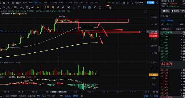 4小时线上看,以太盘面上看,还是压力比较多的,2230附近压力在12点换线都没有突破,上方还有筹码密集区2345附近压力,以太短线上反弹的力度不是很大,基本都是大饼在带动上涨,加上今晚美联储议息会议,2230附近这个空就不急着去布局,明日行情稳定后,2230压力依旧没有有效突破,那就可以直接空进去了,行情只要开始下跌,就算中途上车,那也是利润不少的,晚间思路,短线建议先观望一下,明早行情不破2345可空,自行把握进场机会;短线交易,控制风险,盈亏自理;