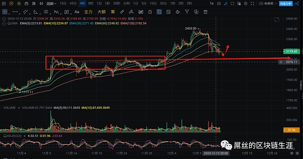 以太今天的走势也相对弱势,目前报价在2180附近。从四小时级别来看,ma120均线也在2180附近,这个位置非常关键。如果短时间内还没有站上,需要特别小心。量能目前也相对温和,后续可能会出现震荡。在小时线上,以太当前走在下降通道中,之前的长针被阴跌所填平,说明以太的走势相对较弱。小时线同样受到MA30均线的压制。我的建议是,目前持有低位多单的投资者可以保持持有,但一旦跌破2100的话,需要小心可能会出现大幅回调。如果站上2200的话,我认为盘面将会稳定,价格也有望突破下降通道,后续上涨空间较大。