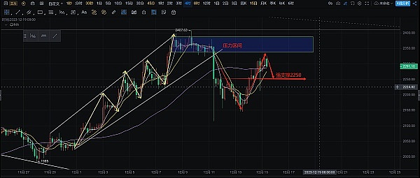 如果跌破2250,那么很可能会修复昨晚下探的这根针,并进一步回踩。