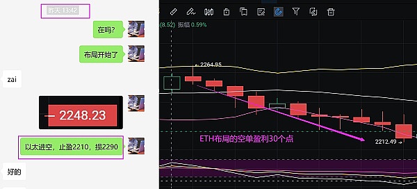 金辉:恭喜 行情再次下跌 ETH在2248布局的空单盈利30个点 给力