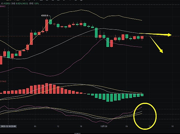 昨天洪伟给出看空思路,完美止盈,大饼的最大利润空间近1500点,以太坊也有120点,目前行情处于震荡横盘,但是始终未能突破BOLL中轨压制,KDJ运行在超买区一线,结合数据分析,午间操作思路还是偏向于做空。