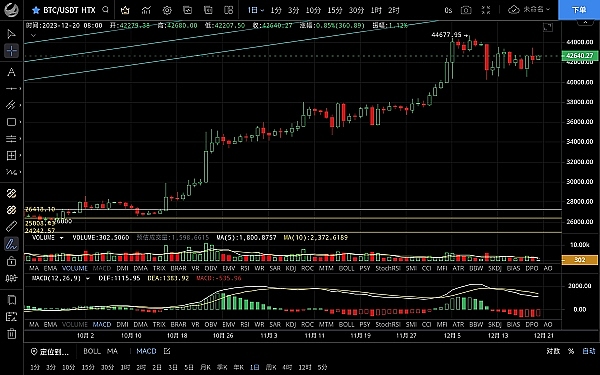 大饼昨日最高触及43452一线受阻,随后行情震荡回落,晚间行情加速最低跌至41800一线支撑反弹,恭喜跟上昨日思路的朋友多单获利500点,目前币价在42460附近运行,四小时级别k线连阴回落插针至ma120均线止跌反弹,macd多头缩量双线仍是金叉状态,短期多空都不延续,呈宽幅震荡,白盘波动不大没有入场机会,下方4w关口是重要防守位置,不会轻易失守,虽有破新低的概率,但趋势不会轻易发生改变,日线级别k线收线在ma14下方,预计行情还会震荡一段时间才会选择方向,大方向依然看涨,建议逢低做多为主高空为辅,上方压制42700-43200,下方支撑41800-41300
