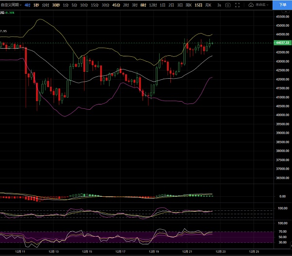 昨日我在文章说43200-43500布局多,午夜币价也是成功给到回撤到咱们得进场点位,致使我们的多单再次拿下近700点空间,以太也给到近30点。大饼走势一直按我们预期走势并不复杂,目前还是走了箱体结构,晚间触及44300离45000也是一步之遥,多也好、空也罢。把握到了就是捡油的开端。废话不多说了,咱们看看今日盘面走势情况。