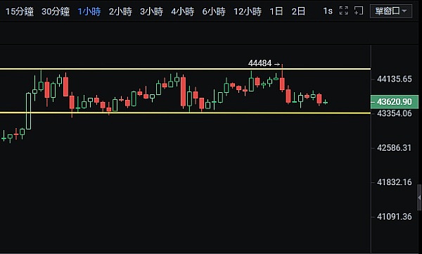 先以短线级别来看,如图①小时线:其实小时线目前就是围绕在44200到下方的43200这个区间内做一个高位的震荡修复,就像前面说的一样,上行站不稳44200,下行破不了43200,虽然1000个点的小级别区间,但是这是最容易让人产生错觉的时候,到了压力位或者支撑位附近的时候,总以为会来一波上破或者下破来打开区间,其实就是因为这种错觉,容易让人在这个区间内迷失自我,当然就会出现较高的容错率,所以在短线级别来看的话,其实也就是在于心态的博弈!