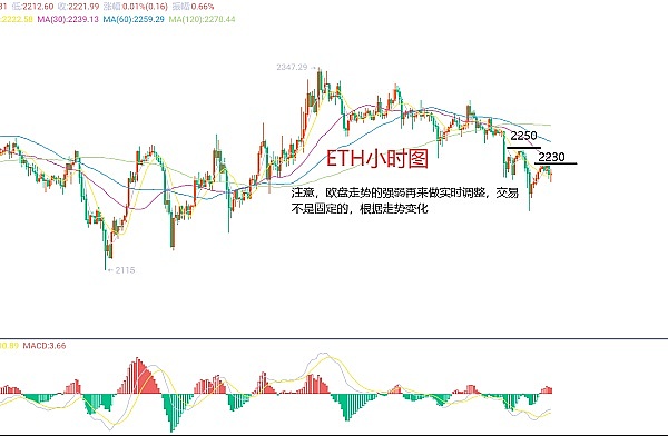 12月27日以太坊(ETH)合约技术面分析:今日方面,大周期日线级别昨日报收中阴线,K线形态上连阴下跌,附图指标死叉向下放量运行,且价格有效向下破位前期的低点位置,价格在均线下方被压制明显,那么今日我们还是要先看延续向下破位的;短周期小时图昨日日内下跌开跌口位置在2275区域附近,欧盘修正后美盘小幅反抽在2250区域二次承压回撤,低点在2180区域附近,当前价格在低位横盘整理,K线形态连阴,附图指标金叉缩量运行,所以欧盘的强弱就是今日延续的关键;因此今日ETH短线合约交易策略:反抽2230区域小仓位空,意外见2250区域补仓空,止损放在2275区域,目标看2180-2160区域;