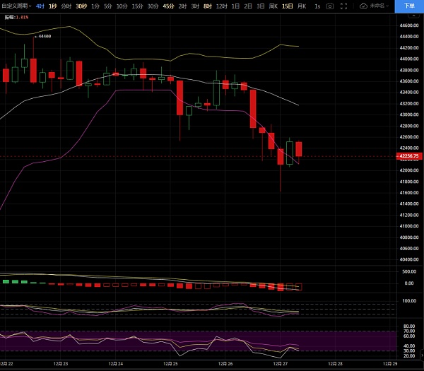 昨天大饼直接吃掉了前一天的涨幅,跌破了支撑直接砸到41637,恐慌情绪开始蔓延起来了。从日线级别看早上收的线确实有点难看,狗庄在日线级别上做了很多动作来迷惑我们的判断,智多星从不马后炮,昨日给到的位置被行情无情的打损,但是我要做到胜不骄,败不馁,重新整理思路,杨帆启航,昨日大饼在凌晨再次向下插针至低点41500后开始走小幅度震荡上行状态直接突破42000关口,最高抵达42600一线。废话不多说了,咱们看看今日盘面走势情况。