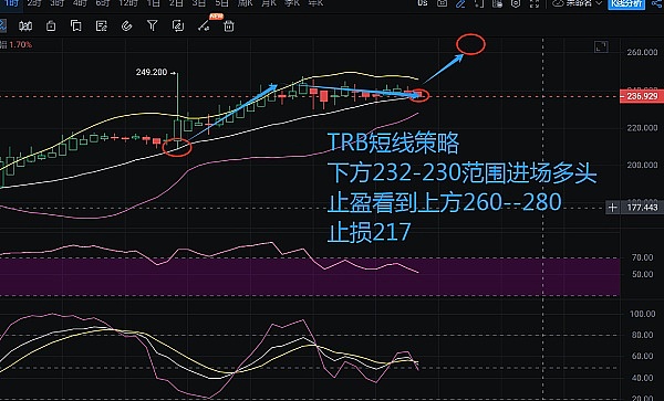 ETH反弹高点逐步下移上方多头由盛转衰|TRB短线追多仍是上上策高调看到260-300范围