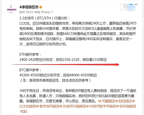以太坊。如李隆昨日所说,2420上方补仓空,凌晨最低触及2335附近,盘中目标成功扫盈,短线走出近100余点的把握空间,实力番苍,全网见证!点位依旧精准吻合,盘中理性稳健取舍。李隆聊后市,交易无难事,平心而论,贵在真实。