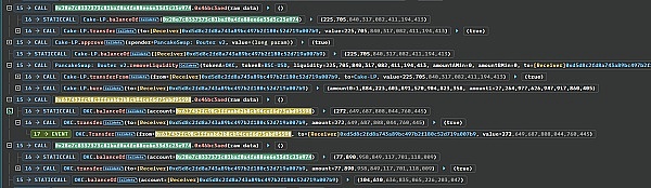 然后攻击者转出攻击合约 0x28e7..E974 的的 LP Token 并将其销毁移除流动性,获得了 1,884,223 USDT Token,以及 27,264 OKC Token。