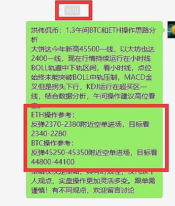 早间洪伟给出BTC和ETH反弹看空,BTC最大利润空间破1200点,ETH破50点,恭喜跟上操作的币友。