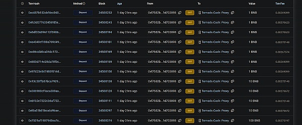经分析该攻击者获利资金最终流入 Tornado Cash 混币平台。