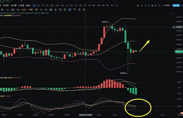 回踩42500-42600附近多单进场,目标看43000-43800
