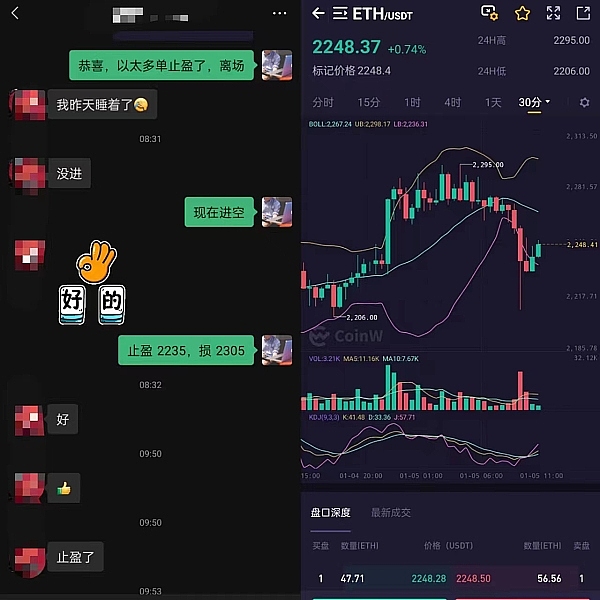 金辉聊币:恭喜 行情暴跌 ETH在2374布局的空单拿下60多个点 太给力了
