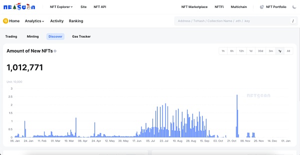 就 NFTScan 数据来看,截至 1 月 5 日,PlatON 网络上已累计发行 NFT 资产 2,710,774 枚,NFT Collection 2,261 个,产生交互记录 6,865,324 条,有过交互的钱包地址 1,180,646 个,总交易额 190,295.2 LAT。