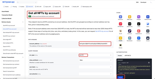 在成功注册开发者账号获取 API Key 后,需要查看 NFTScan API 文档。API 文档包含了所有可以使用的 API 端点和参数,以及如何构建请求和处理响应的详细信息。请认真阅读 API 文档,并确保理解如何使用 API 来获取您需要的数据。NFTScan API 服务致力于帮助开发者改善获取 NFT 数据分析体验。