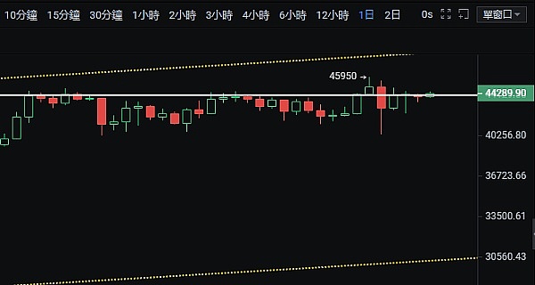自上周的一波强势回撤以后,目前已经逐步对于下行空间进行了全面收复,整体也是一直在箱体的上方压制位附近蹭,就如同飞扬所说的一样,如果要去确认牛转熊的话,那下方要破掉40000才行,毕竟这里才是高位箱体的底部支撑位,而仅仅靠一次的下行就来确认牛转熊还是缺少依据的。