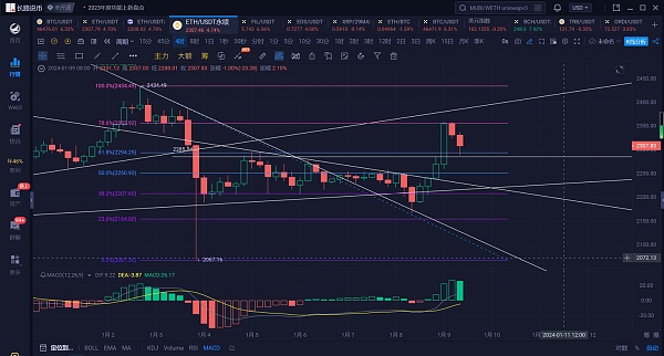 以太坊行情分析:昨天行情回踩周线10日均线获得支撑反弹,凌晨的一波拉伸涨至2360附近承压回落,而月线方面上月行情走出长上影线阳柱,本月反弹上轨失利回踩10日均线获得支撑反弹,可以看出月线技术指标稍有回踩的趋势,若不能顺利突破上轨的压制,整体仍会以震荡修复为主。日线昨天走出大阳线,刚刚回踩受中轨的支撑,并未跌破中轨反弹,有修复之前大阴线的走势,今天可关注是否能够站稳日线中轨的支撑。