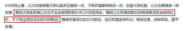 距离现货ETF获批越来越近,明日就会出结果,市场都在等待这个消息,大饼昨晚也是迎来突破反弹,最高点位在47283位置,昨日已经提示大家市场多头情绪浓重,行情晚间突破机会很大,预计会到47000,大饼不负所望到达47000附近;以太也走了一波反弹,虽然没有到达2385位置,但最高点到达2359位置,多单也是有一定利润的,恭喜跟上笔者脚步的朋友再次获利;明日就是现货ETF获批的日子了,明日反弹的机会还是更大,但今日还是有回调机会;