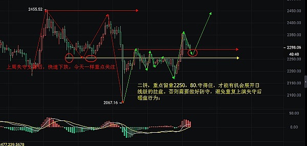 所以操作上稳健对待,留意46000站稳情况。短线可低多尝试。日内46300附近做多尝试,严格带损500点,目标47600,48800.意外见45800可二次尝试做多,止损400点,目标不变;二饼同步进行即可,留意2280,2300站稳状态;注,放小仓位,以尝试搏日线换线,切记严格带损控好风险!散会。