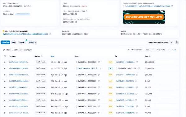 而最大持有者在购买足够的DEXE后,持仓超过45天,并为有任何出售、转移的动作。