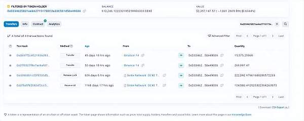 除此之外,Binance的热钱包持有了较多的筹码,Wormhole(Portal Token Bridge)和几个主要的交易平台(例如Binance和Uniswap)在前10名持仓者中占据显著位置。这表明DEXE代币在多个交易平台上活跃,有利于提高流动性。