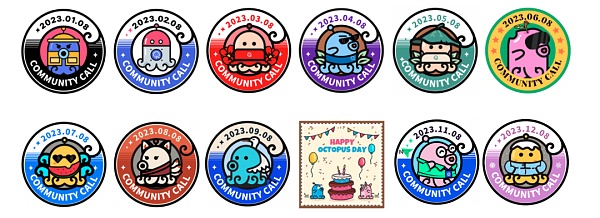 章鱼网络 Community Call 会议在23年雷打不动每月一期共计开展12期。发放出席勋章 POAP NFT 12个。Octopus 2.0 从初步想法到最终完成,其中有讨论、有反复,每一步都在社区进行了充分且透明的沟通,我们以此为自豪。