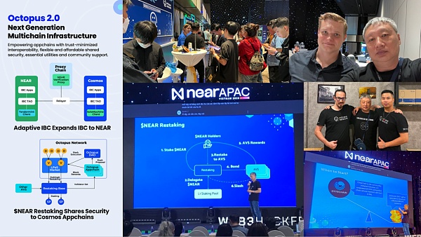 2023年11月,章鱼网络受邀参加了 NEAR 生态一年一度的最重要的活动:NEARCON2023,并且宣布:章鱼网络会在12月推出的 $NEAR Restaking 服务。