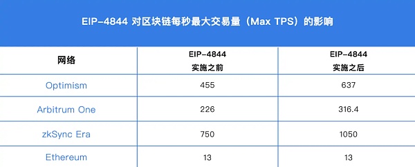 引入 blob 后,L2 所提交的交易数据将不再需要竞争 Calldata 的存储空间,而是直接提交至 blob 中进行存储。并且,blob 的数据会在大约一个月左右的时间后自动删除,进一步降低没必要的存储负担。blob 的引进意味着 L2 的交易费用将极大地降低(~降低 90%),并且,由于 blob 相当于为 L2 额外拓展了区块空间,L2 能同时提交的交易吞吐量也将显著提高。若 Dencun 升级后成功实现了一个区块外挂 3 个 blob 的平均目标,L2 的吞吐量将有接近 2 倍的提升。若最终实现了一个区块外挂 64 个 blob 的目标,L2 的吞吐量将有接近 40 倍的提升。